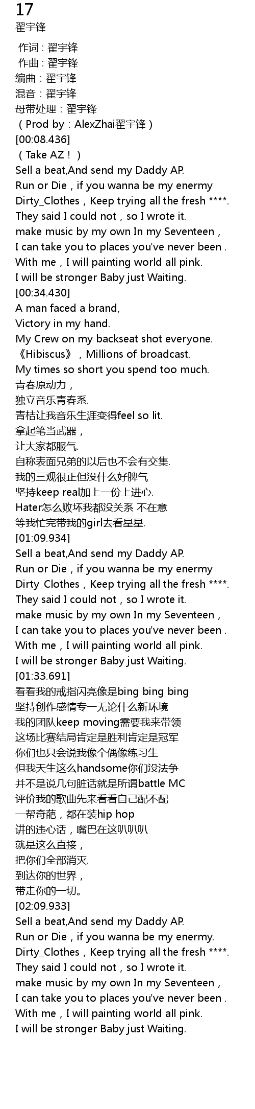 | [00:06.937] | (Prod by:AlexZhai翟宇锋) |