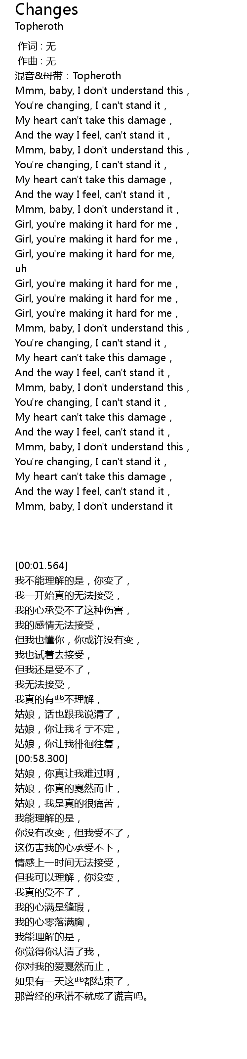 | [00:01.564] | 混音&母带:Topheroth |