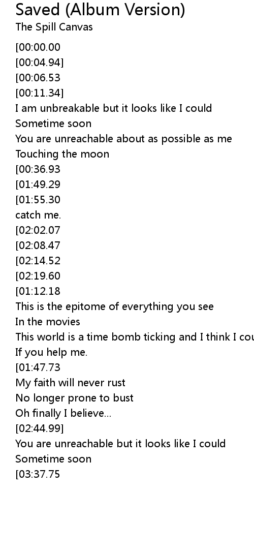 | [01:16.95][00:00.00] | -= The Spill Canvas 《 Saved 》=- |