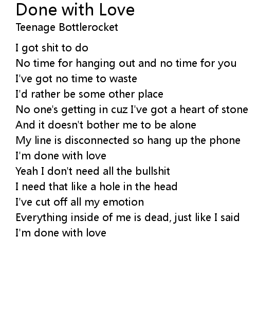 | I'm done with love | |