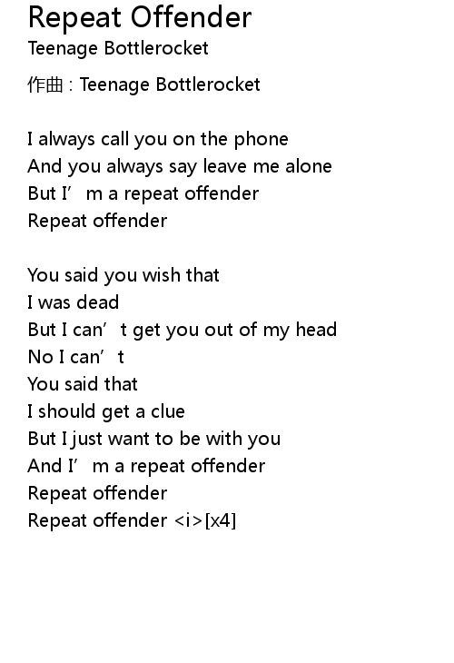 | 歌曲 | Repeat Offender |