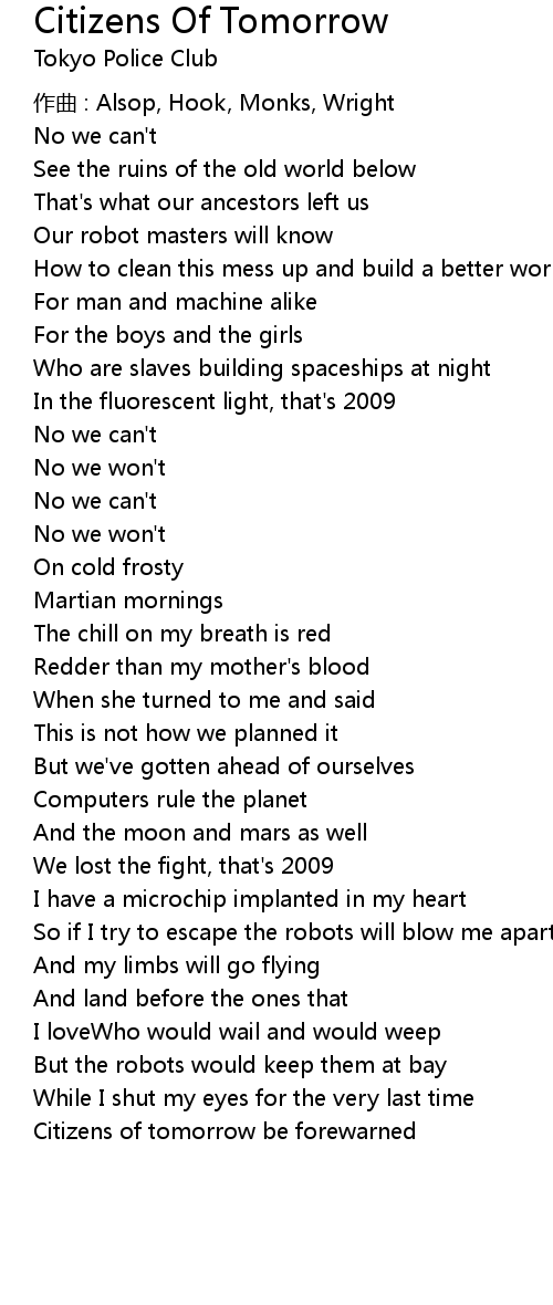 | 歌曲 | Citizens Of Tomorrow |