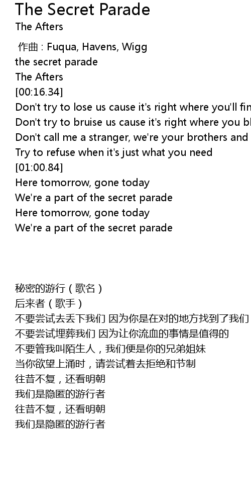 | [00:00.00] | zuo qu : Fuqua, Havens, Wigg |