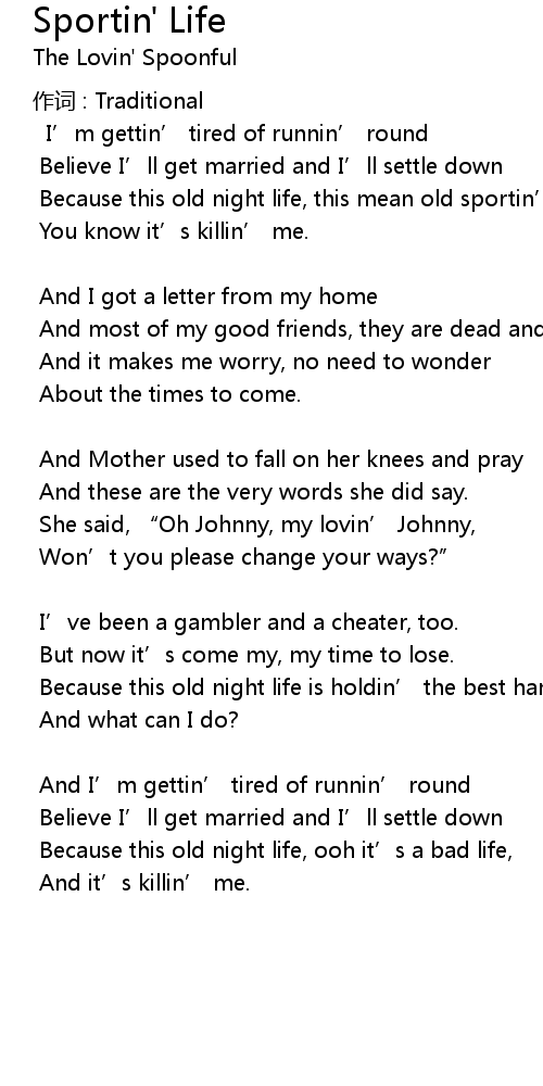 | Because this old night life, this mean old sportin' life, | |