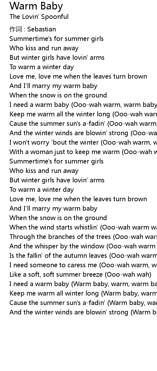 | Keep me warm all winter long Warm baby, warm warm baby | |