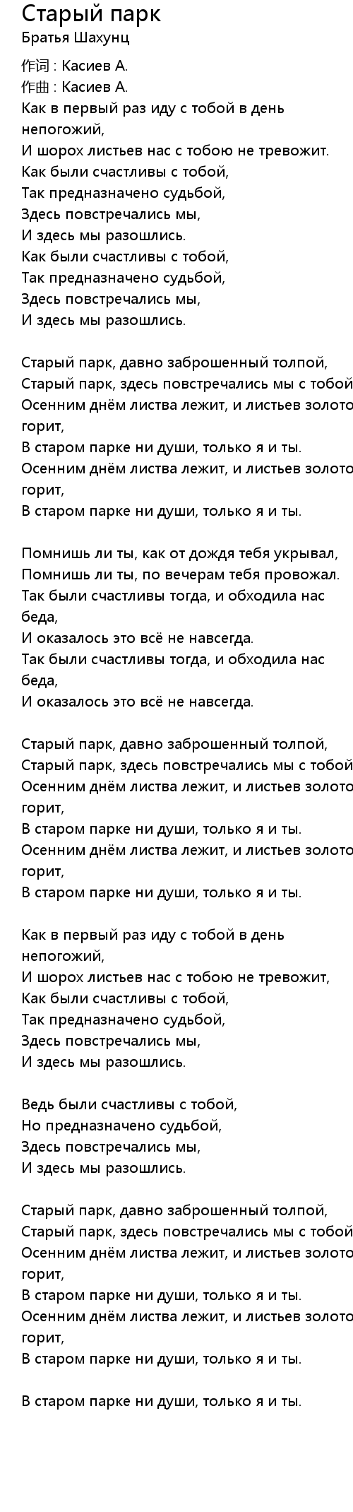 Старый парк 歌词