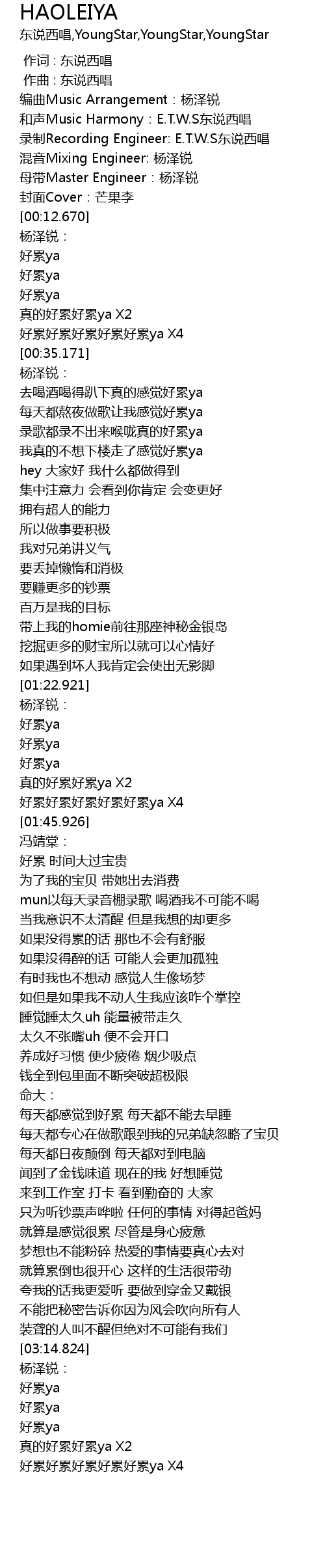 | [03:29.493] | hǎo lèi hǎo lèi hǎo lèi hǎo lèi hǎo lèi ya X4 |