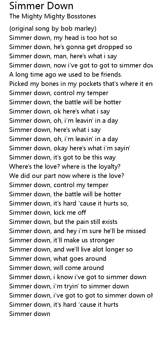 Simmer down, i've got to got to simmer down ohh