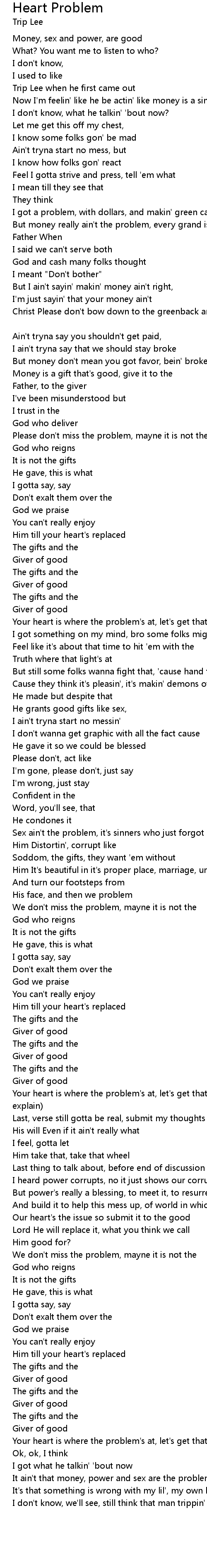 Your heart is where the problem's at, let's get that understood (You gotta explain) |