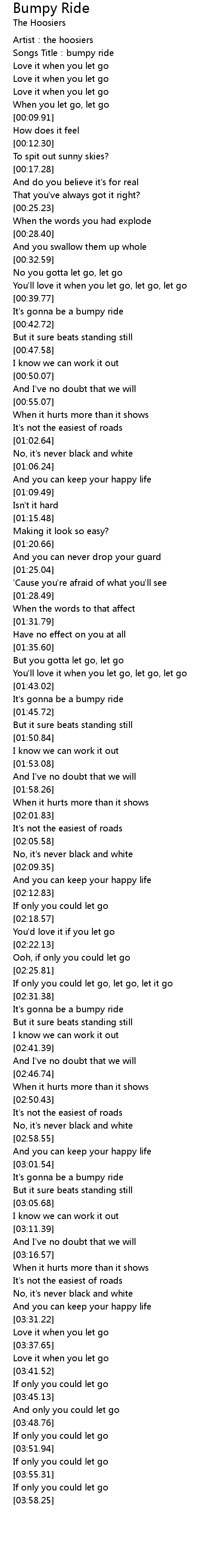 | [03:02.12] | It' s gonna be a bumpy ride |