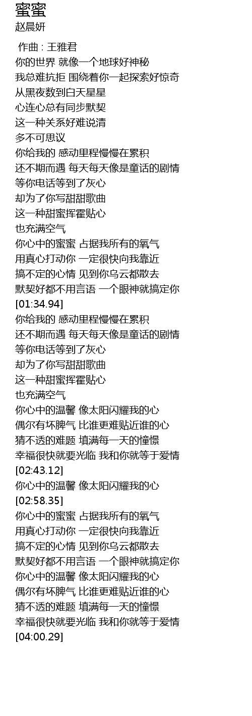 | [03:02.29] | 你心中的蜜蜜 占据我所有的氧气 |