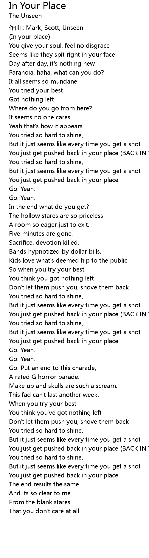| 歌曲 | In Your Place |