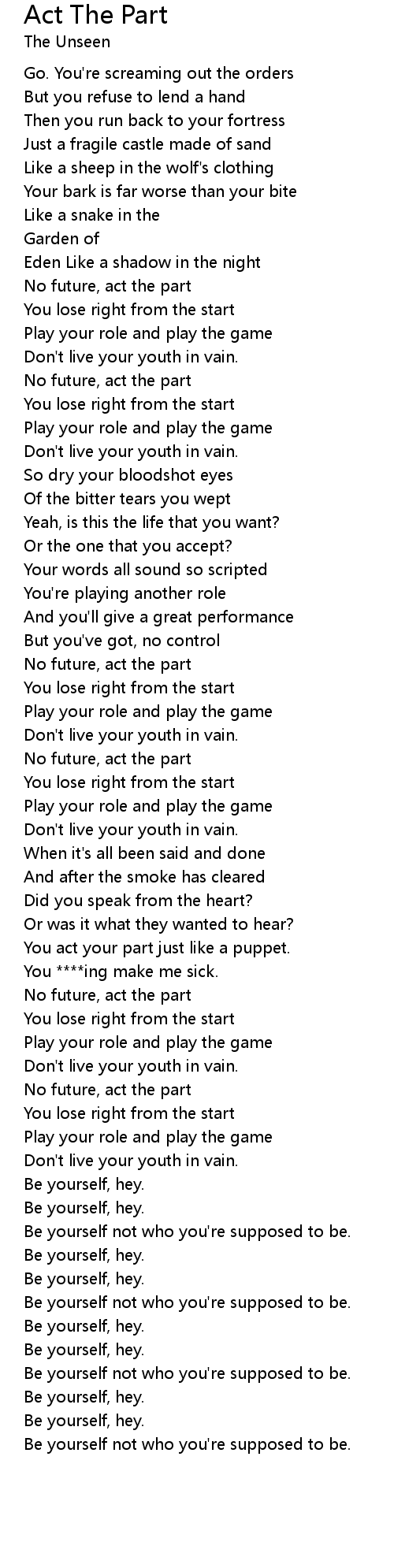 Act The Part 歌词