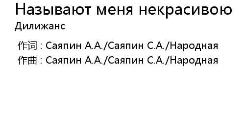 | [00:00.00-1] | 作曲 : Саяпин А.А./Саяпин С.А./Народная |
