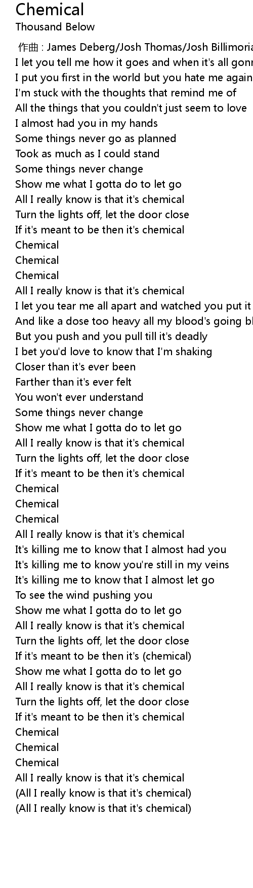 | [00:58.840] | If it' s meant to be then it' s chemical |