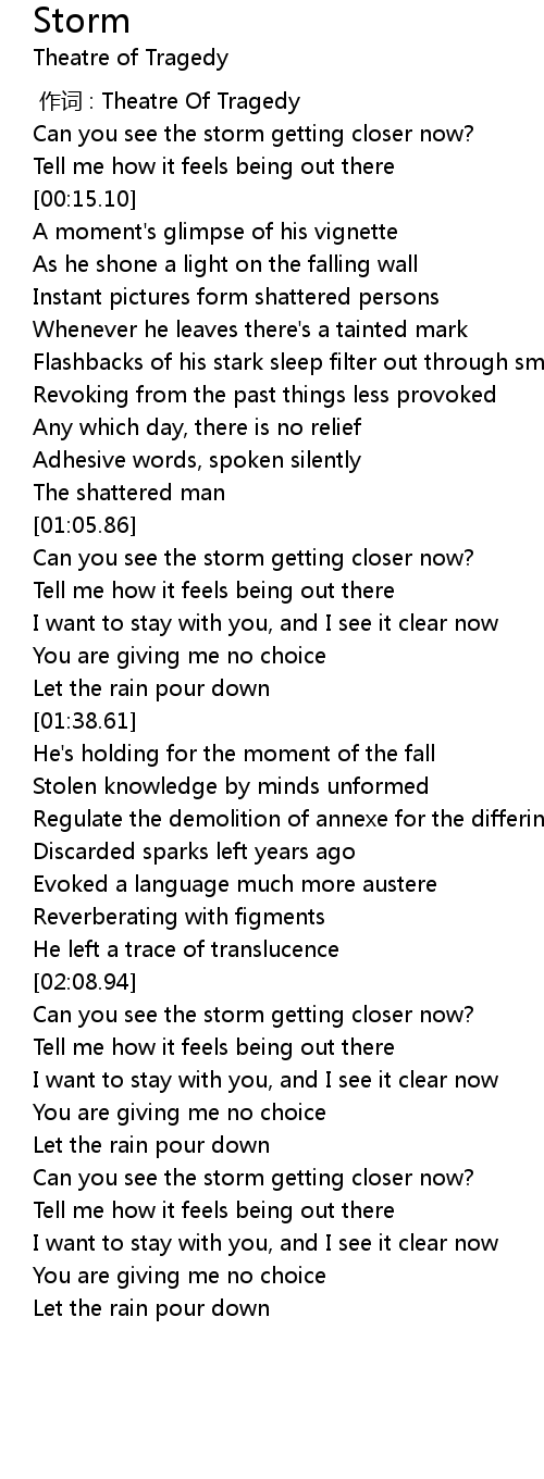 | [00:05.12] | Can you see the storm getting closer now? |