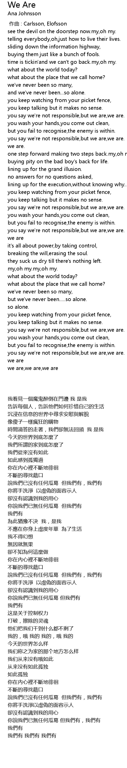 | [00:00.00] | 作曲 : Carlsson, Elofsson |