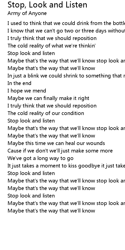 Maybe that's the way that we'll know stop look and listen |