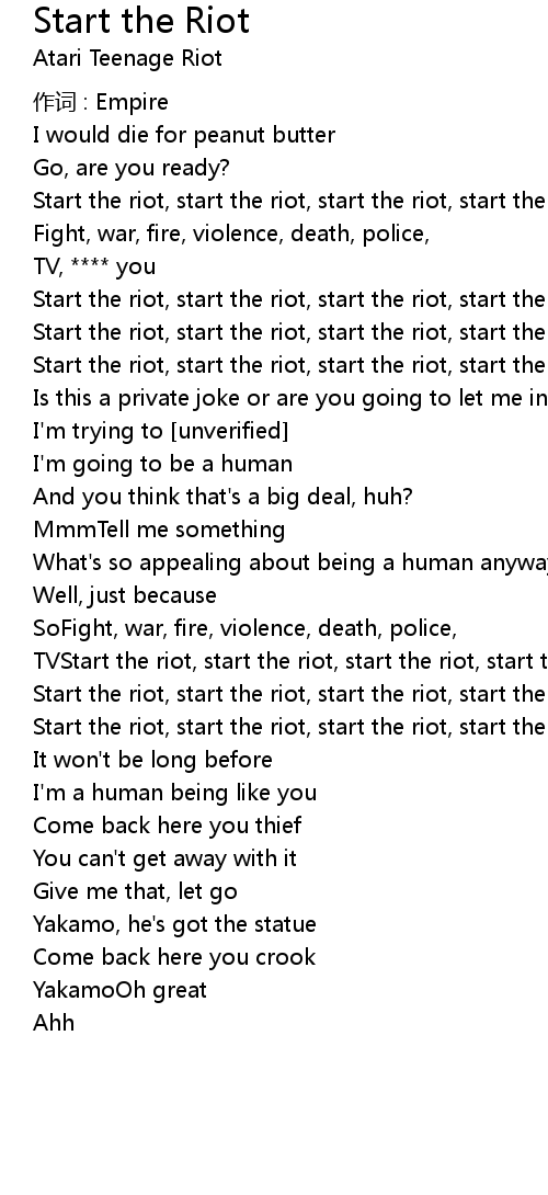 | Start the riot, start the riot, start the riot, start the riot now | |