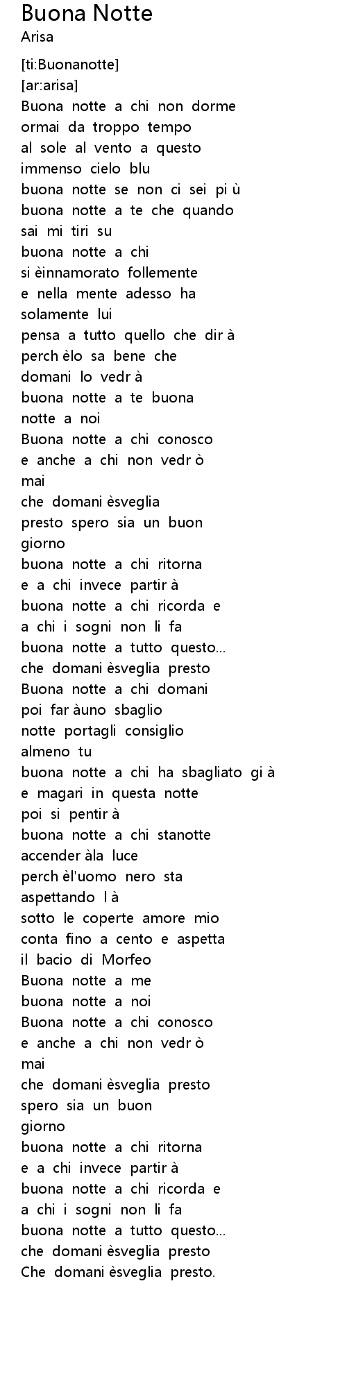 | [00:35.59] | buona notte se non ci sei pi ù |