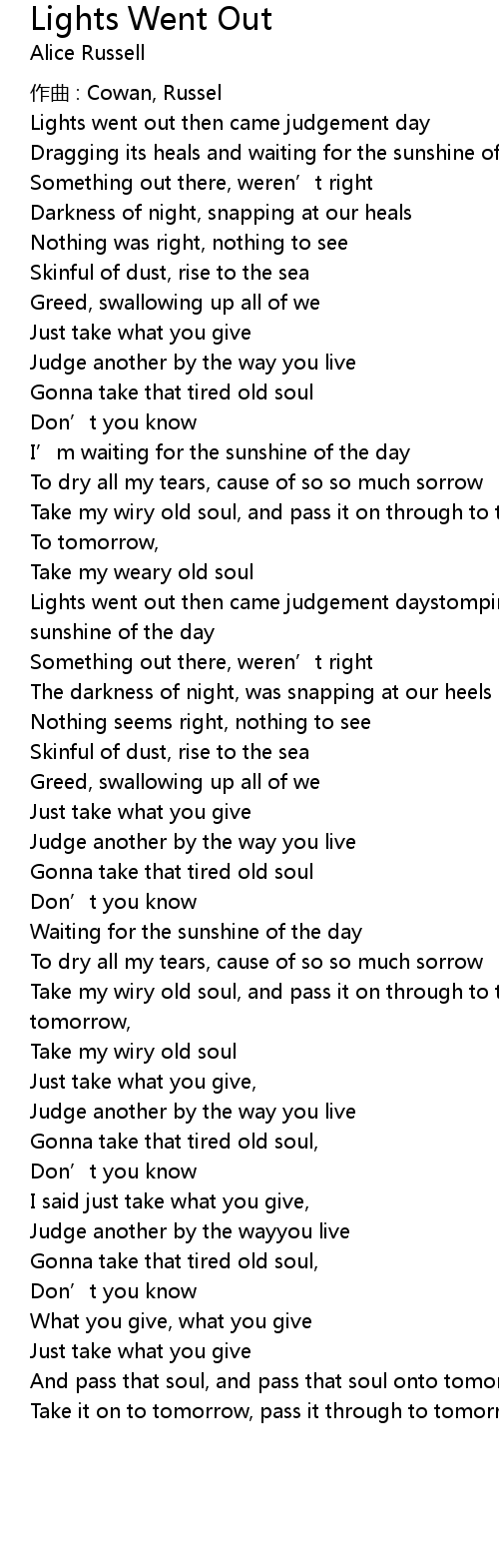 | 歌曲 | Lights Went Out |