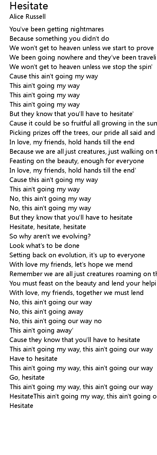 HesitateThis ain't going my way, this ain't going our way |