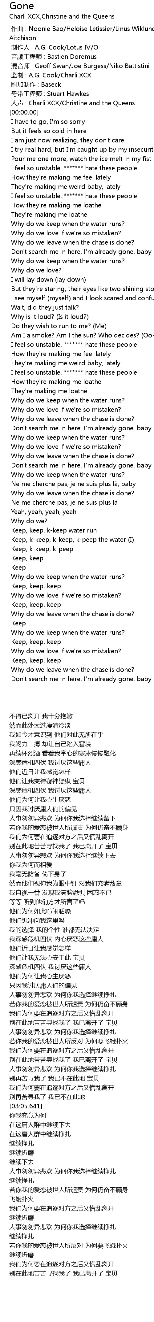 | [00:00.00] | 作曲 : Noonie Bao/Heloise Letissier/Linus Wiklund/Charlotte Aitchison |