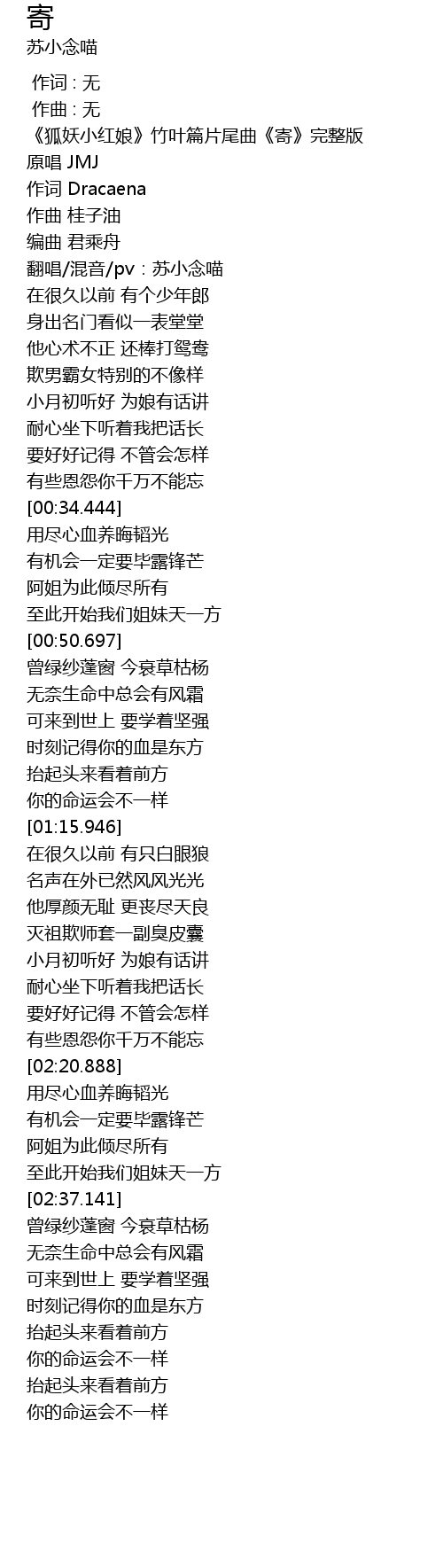 | [00:01.945] | 《狐妖小红娘》竹叶篇片尾曲《寄》完整版 |