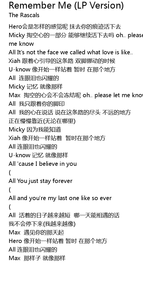 | [03:47.62] | Hero xiàng kāi shǐ yí yàng zhàn zhe zàn shí zài nà gè dì fāng |