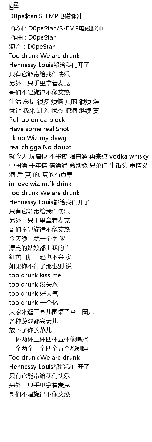 | [01:44.837] | too drunk 没关系 |