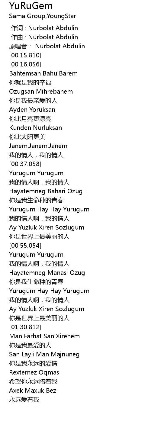 | [00:15.311] | 原唱者: Nurbolat Abdulin |