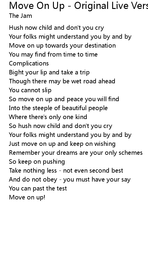 | So move on up and peace you will find | |