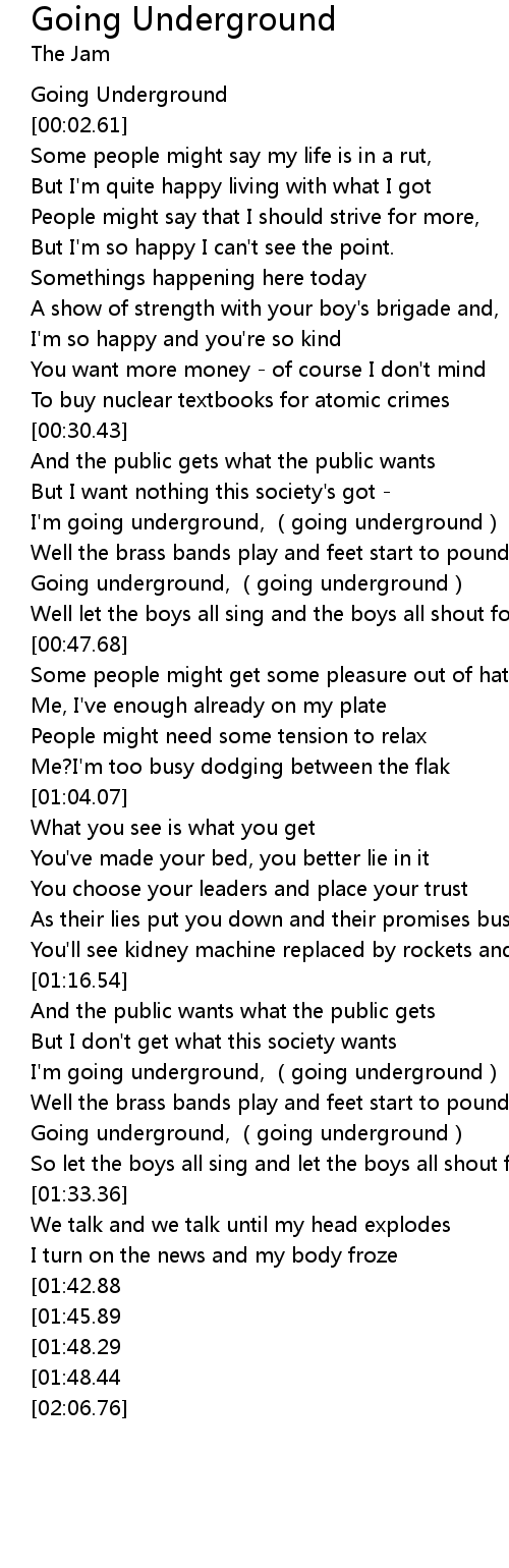 | [02:26.19][01:48.44] | Going underground, I'm going underground! |