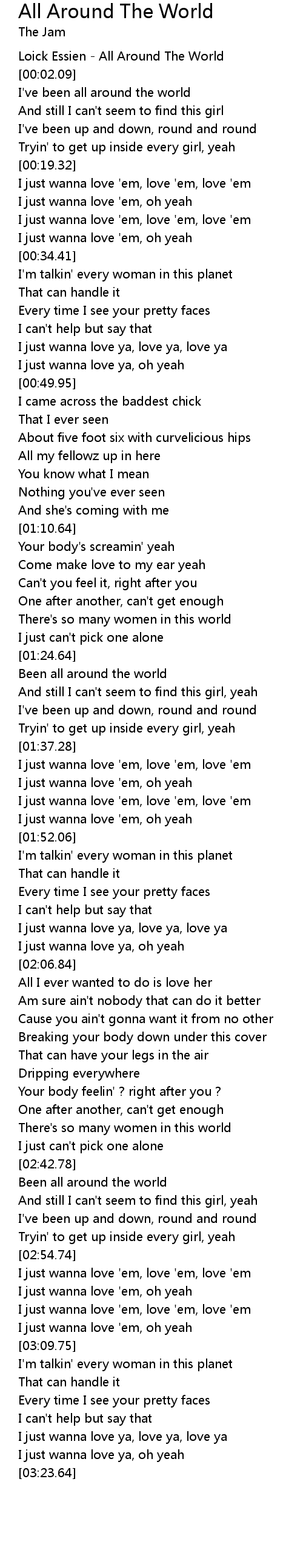 I've been all around the world |