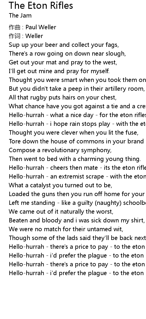| Hello-hurrah - there's a price to pay - to the eton rifles, | |