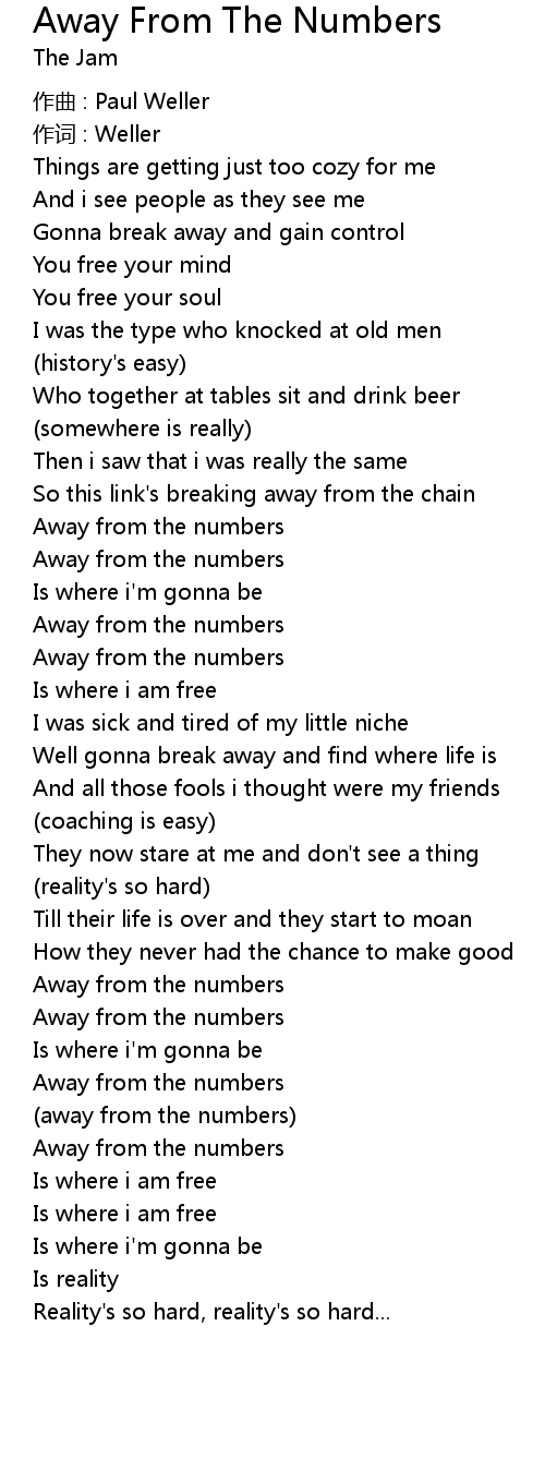 | 歌曲 | Away From The Numbers |