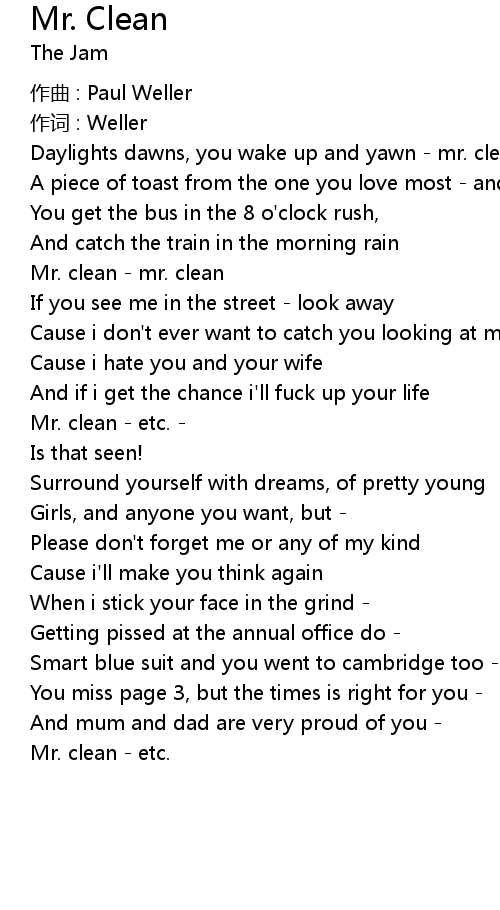 | 歌曲 | Mr. Clean |