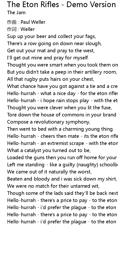 | Hello-hurrah - there's a price to pay - to the eton rifles, | |