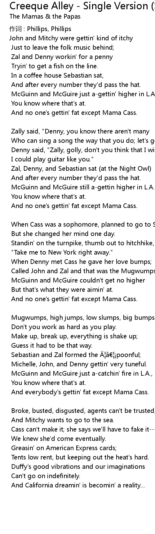 | 歌曲 | Creeque Alley - Single Version (Stereo) |