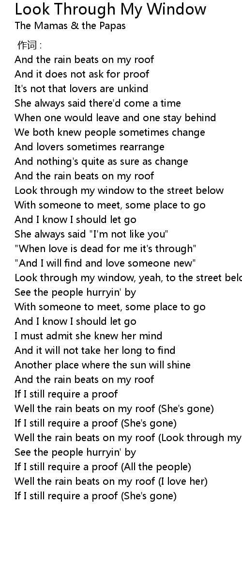 | [02:59.01] | Well the rain beats on my roof Look through my window |