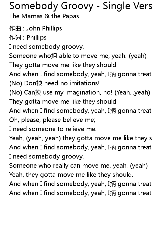 | 歌曲 | Somebody Groovy - Single Version |