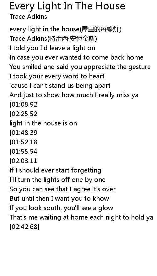 | [00:01.89] | every light in the house(屋里的每盏灯) |