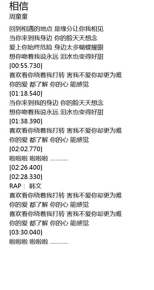 | [02:03.230] | 啦啦啦 啦啦啦 ............ |