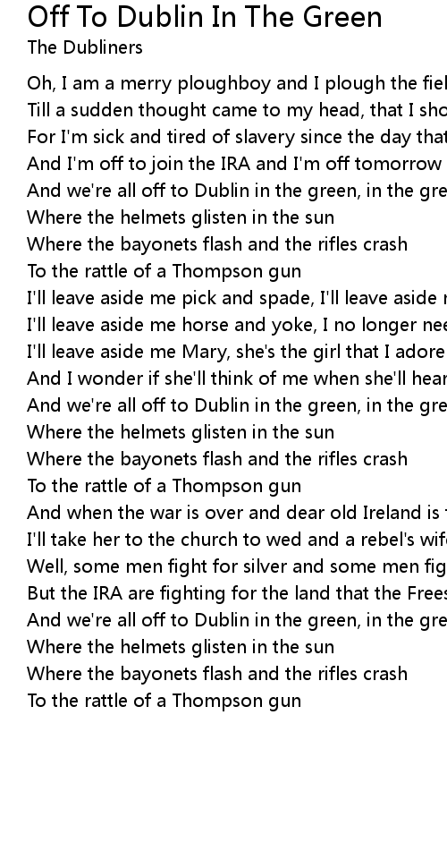 And we're all off to Dublin in the green, in the green |