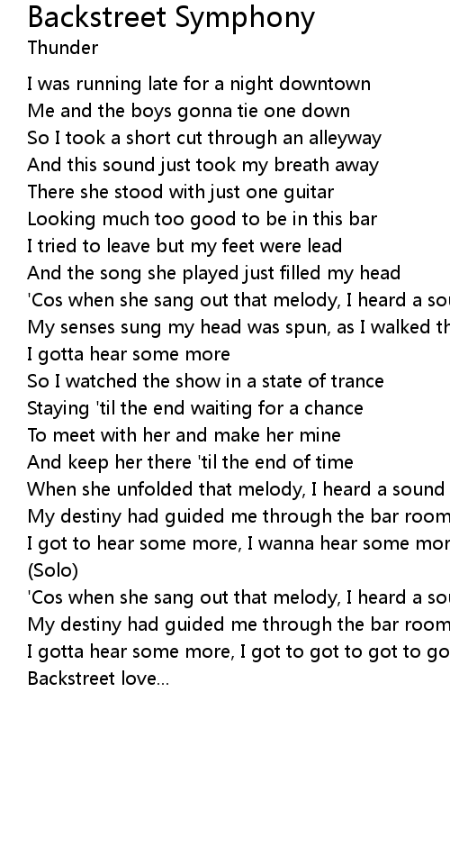 'Cos when she sang out that melody, I heard a sound like a backstreet symphony |