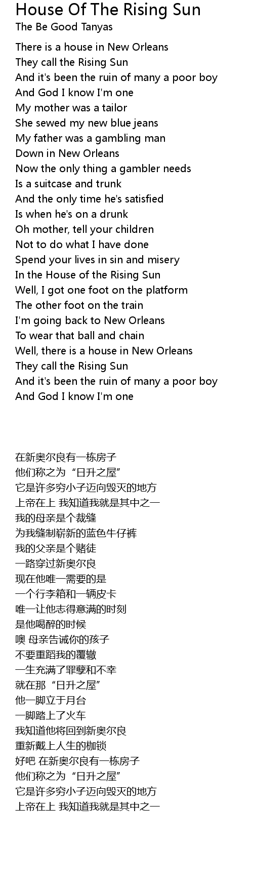 In the House of the Rising Sun |