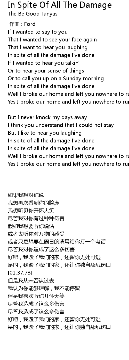 | 歌曲 | In Spite Of All The Damage |