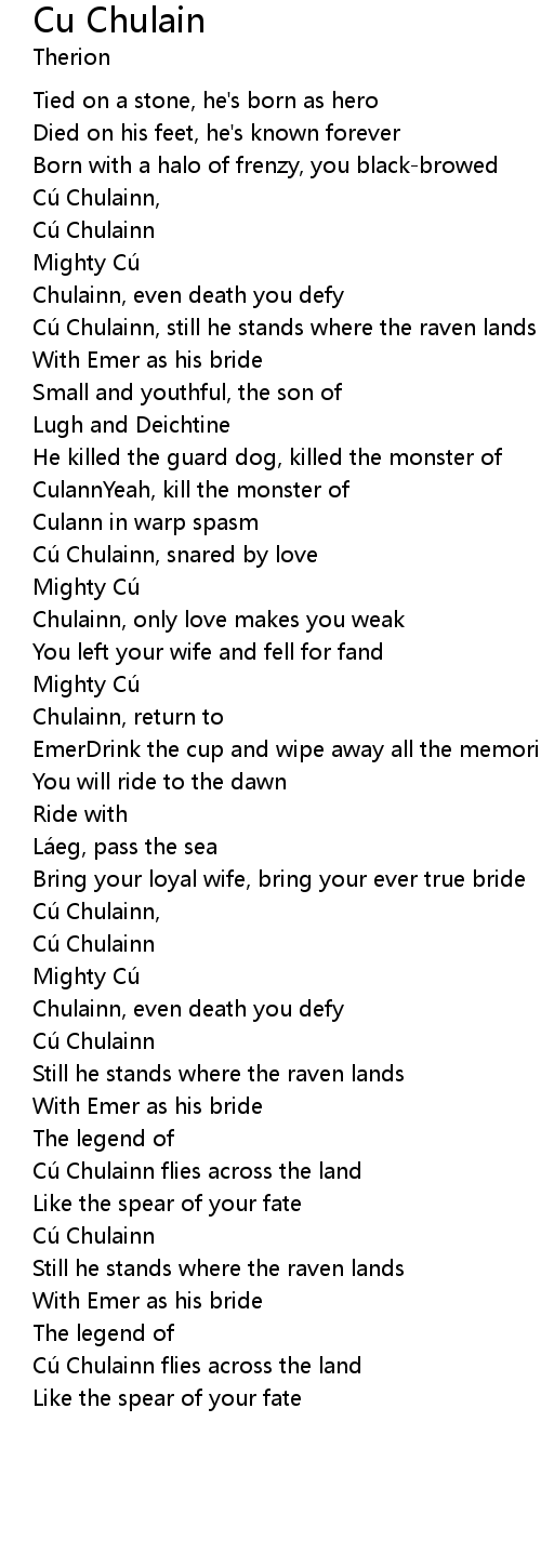 | Chulainn, even death you defy | |