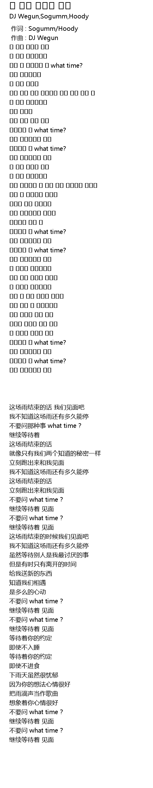 | [02:28.905] | 물어보지 마 what time? |