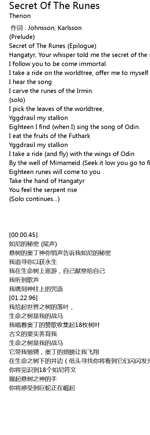 | [00:49.13] | 悬树的奥丁神你悄声告诉我如尼的秘密 |